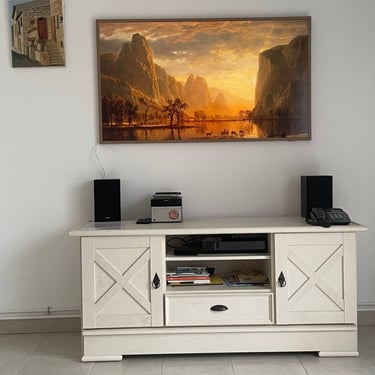Dans l'optique d'améliorer votre confort, nous avons installé une toute nouvelle télévision à écran plat qui se change en cadre quand elle n'est pas allumée, ce qui contribue à la décoration de notre salon